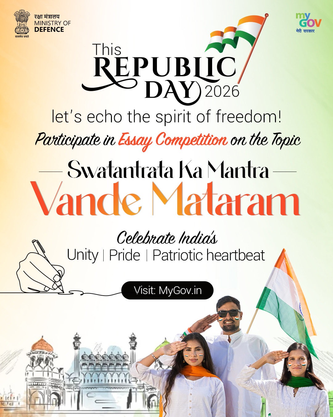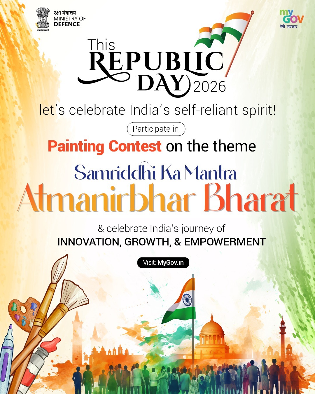 The Ministry of Defence and MyGov invite all citizens—especially students and young artists—to participate in exciting national competitions ahead of the Republic Day Celebrations 2026!