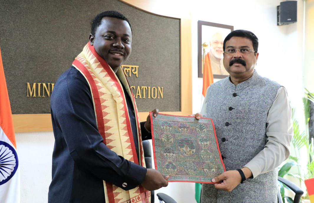 Beginning his maiden visit to India Dy Education Minister of Ghana John Ntim Fordjour had fruitful discussions with Education Minister Dharmendra Pradhan on issues to strengthen cooperation in education & innovation.