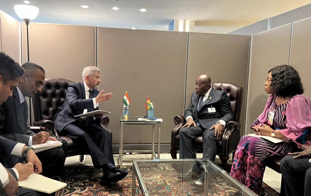 Calling on HE President Nana Akufo-Addo External Affairs Minister Dr S. Jaishankar discussed growing India-Ghana ties including the development partnership & cooperation as UNSC members especially in counter terrorism