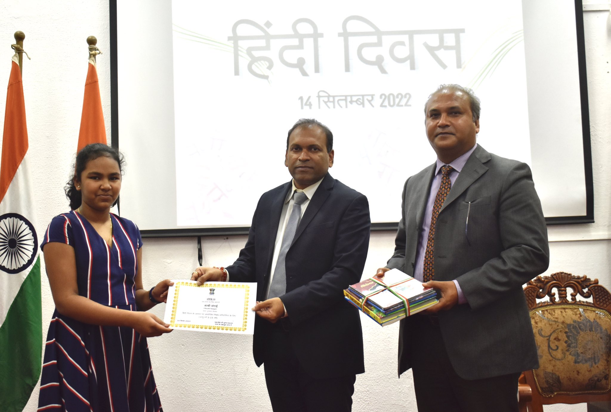 Accra celebrates HindiDiwas2022 with address by High Commissioner, recitals of poems, quiz & essay competition and awards to the winners.