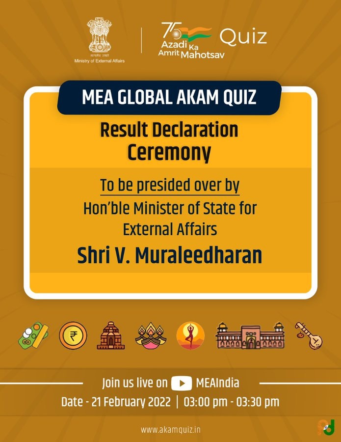 Join us for the Result Declaration Ceremony of the MEA Global AKAM Quiz, to be presided by @MOS_MEA.