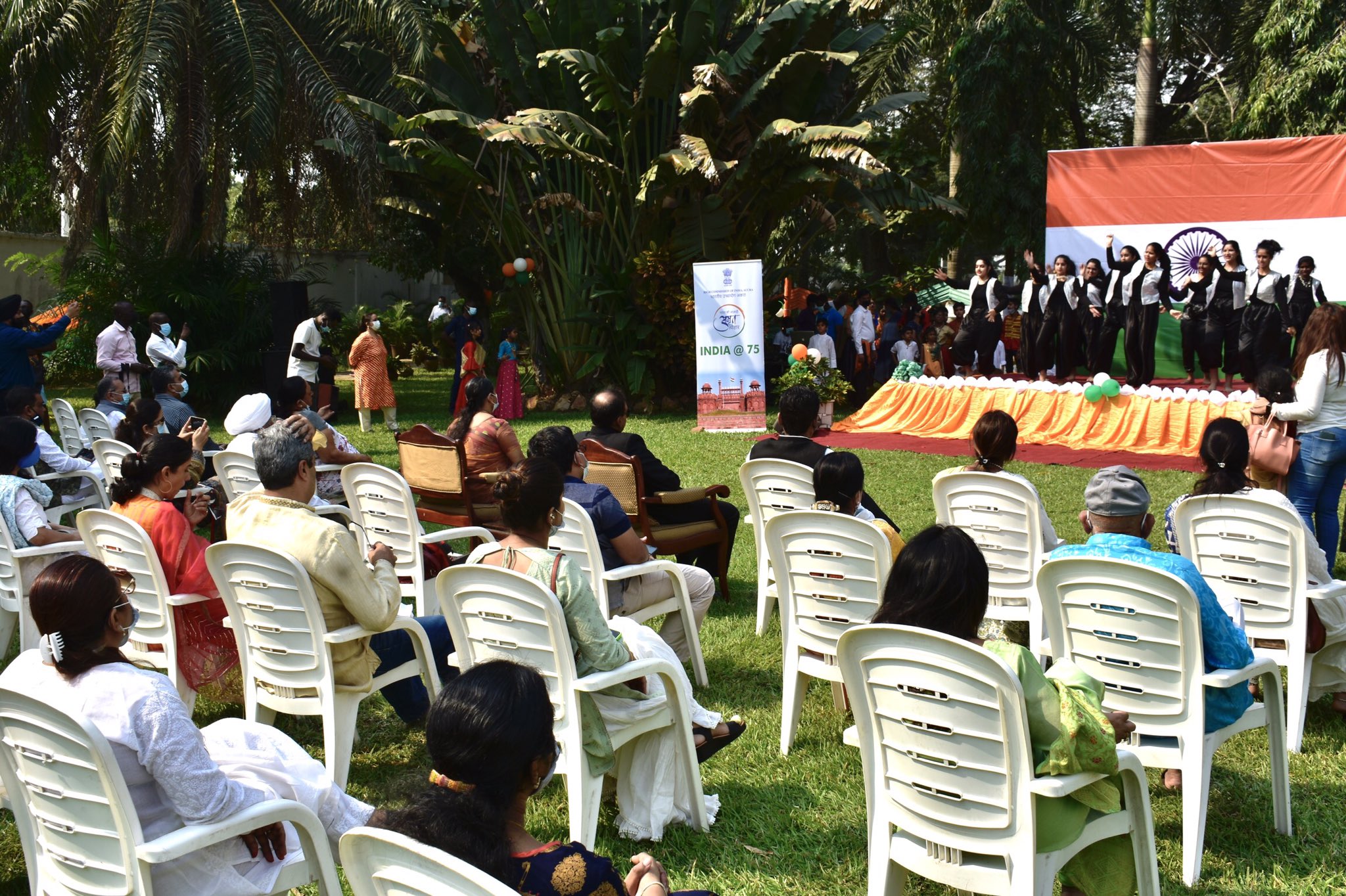 Celebrating @AmritMahotsav on #RepublicDayIndia at India House in #Accra with rendering of patriotic songs & performing beautiful dances showcasing diverse Indian culture