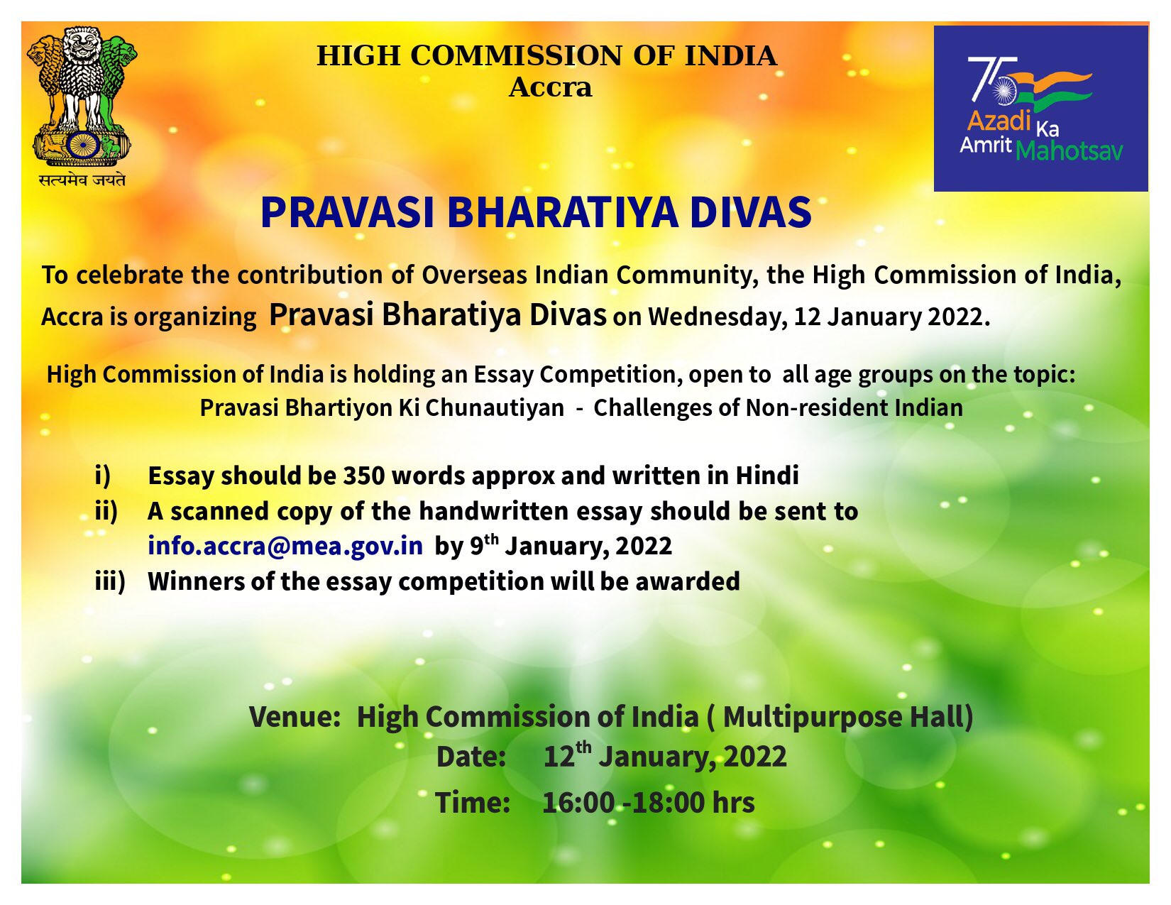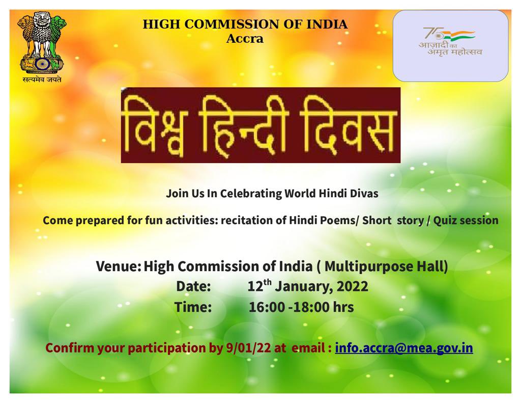 #AmritMahotsav Join us to celebrate Pravasi Bharatiya Divas, Vishva Hindi Divas & National Youth Day by participating in essay & quiz competitions & recitation of Hindi poems