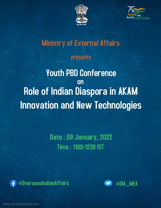 High Commission of India is pleased to inform that to mark the Pravasi Bhartiya Divas (PBD) and “AKAM”-India@75 celebrations, a virtual “Youth PBD Conference”