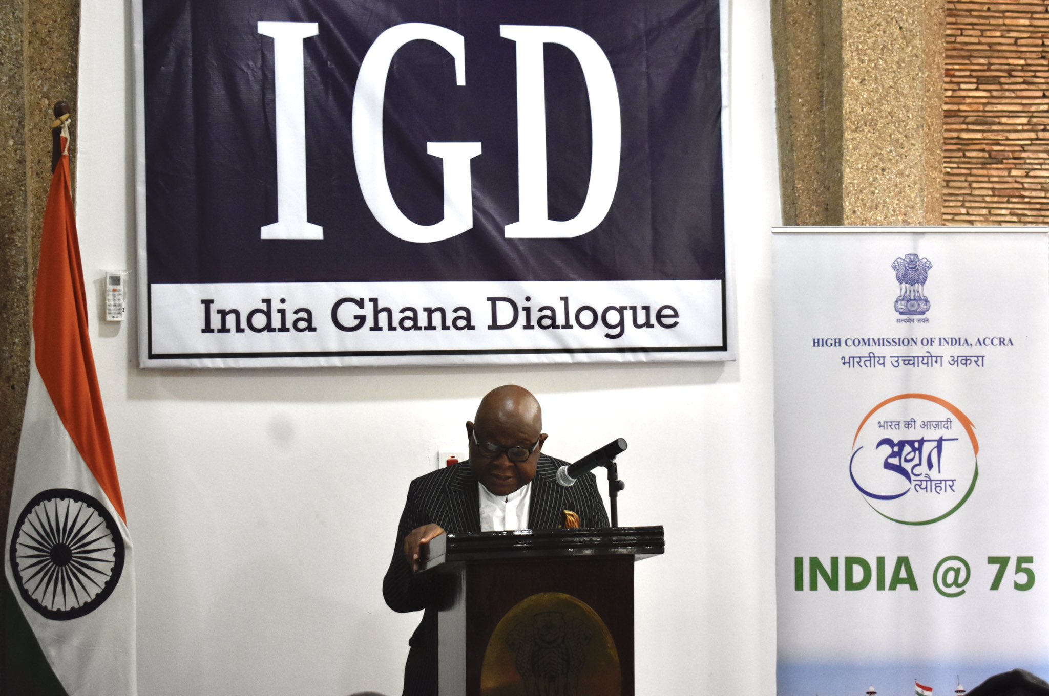 "Amrit Mahotsav addressing India Ghana Dialogue High Commissioner highlighted democratic consolidation in India in 75 years since independence & its significance for Ghana"
