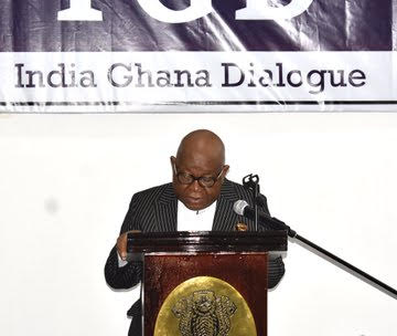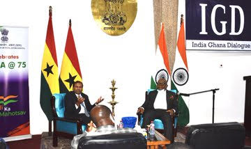 Amrit Mahotsav Inaugural Lecture of India Ghana Dialogue ‘Being Democracies’ was delivered by Prof AM Oquaye, former Parliament Speaker; the Dialogue was moderated by the High Commissioner
