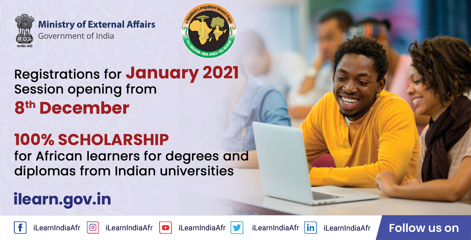 Commencement of enrolment in Graduate, Diploma and Certificate  Programmes for students of Africa from 8th December 2020 under  e-VidyaBharti and e-ArogyaBharti (e-VBAB) Project