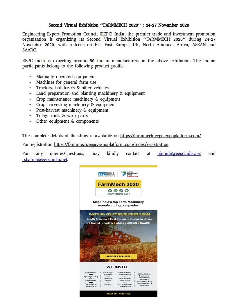 2nd Virtual Exhibition FARMMECH 2020 : 24-27 November 2020