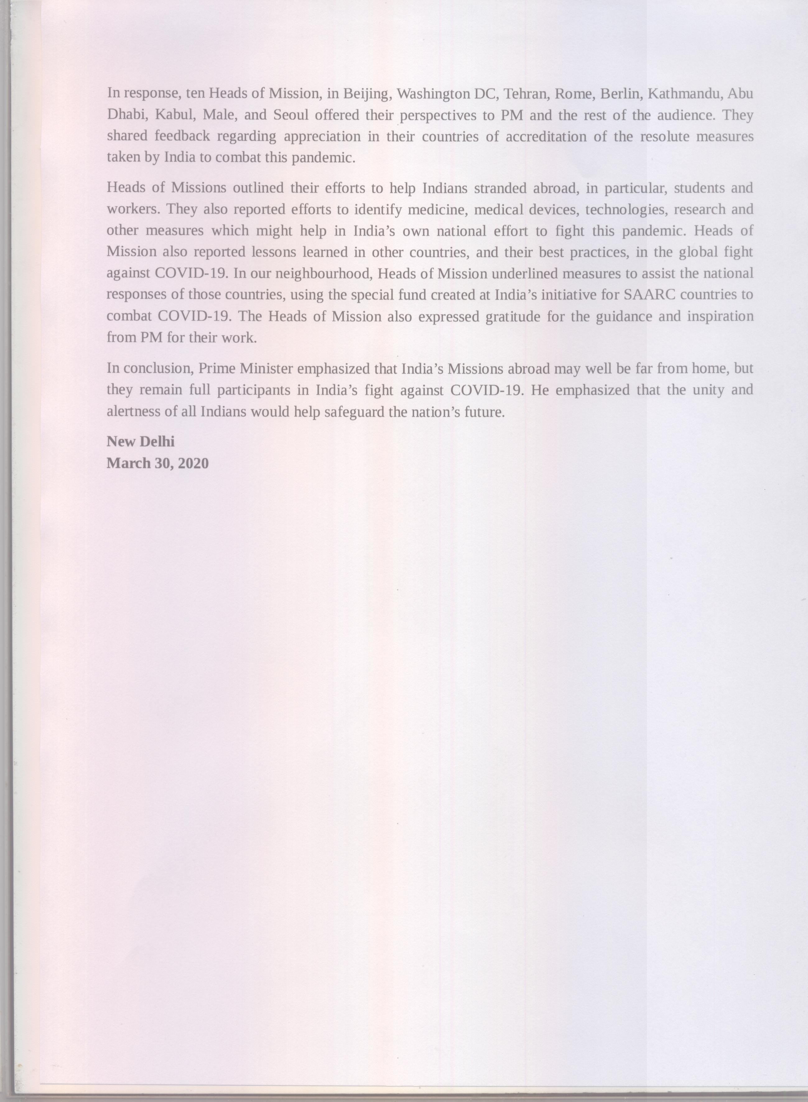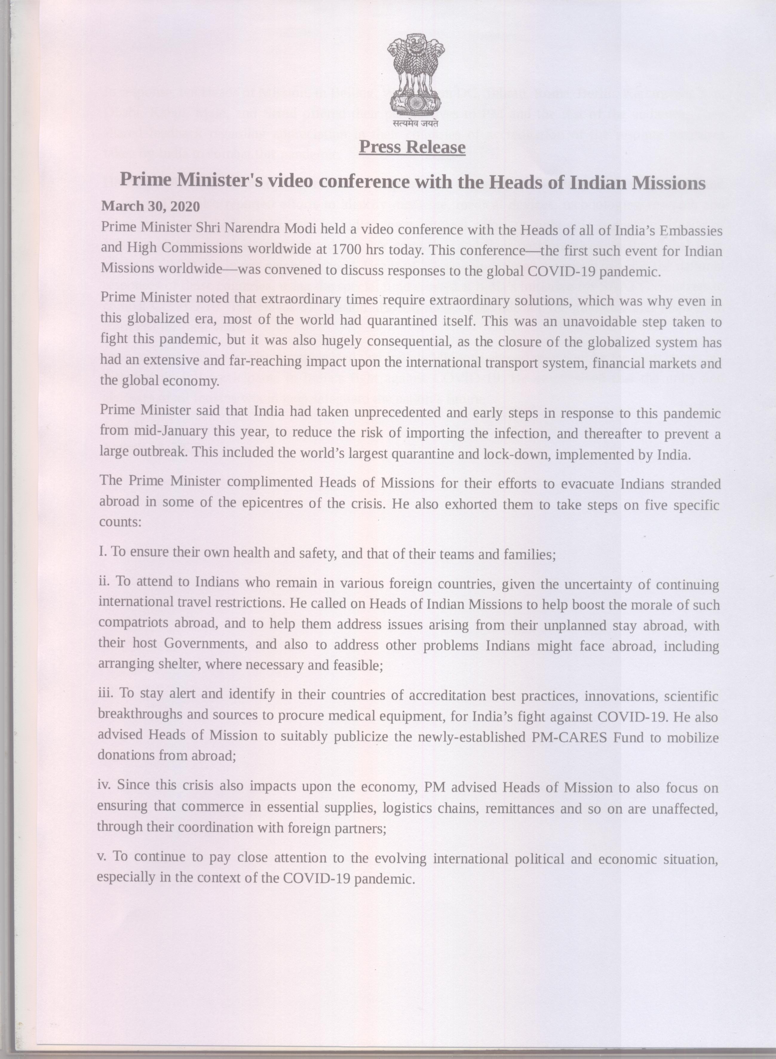 Prime Minister's video conference with the Heads of Indian Missions