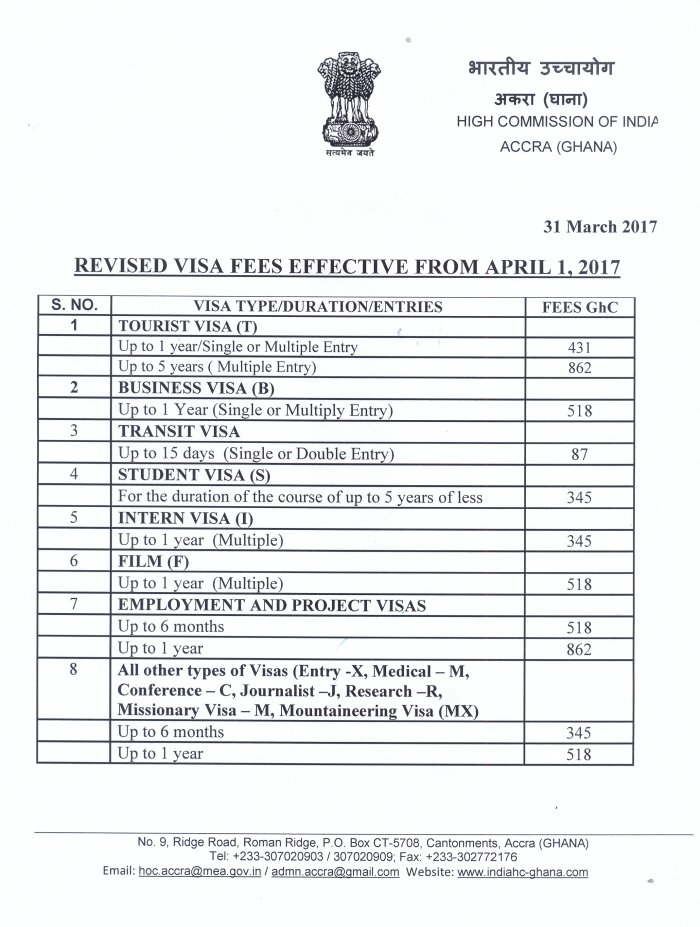 Revised Visa Fees Effective from 1st April 2017